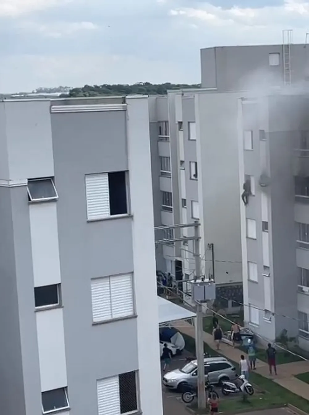 Para escapar do incêndio, o casal precisou pular do quarto andar do prédio pela janela do apartamento e caiu em colchões colocados por vizinhos para amortecer a queda.