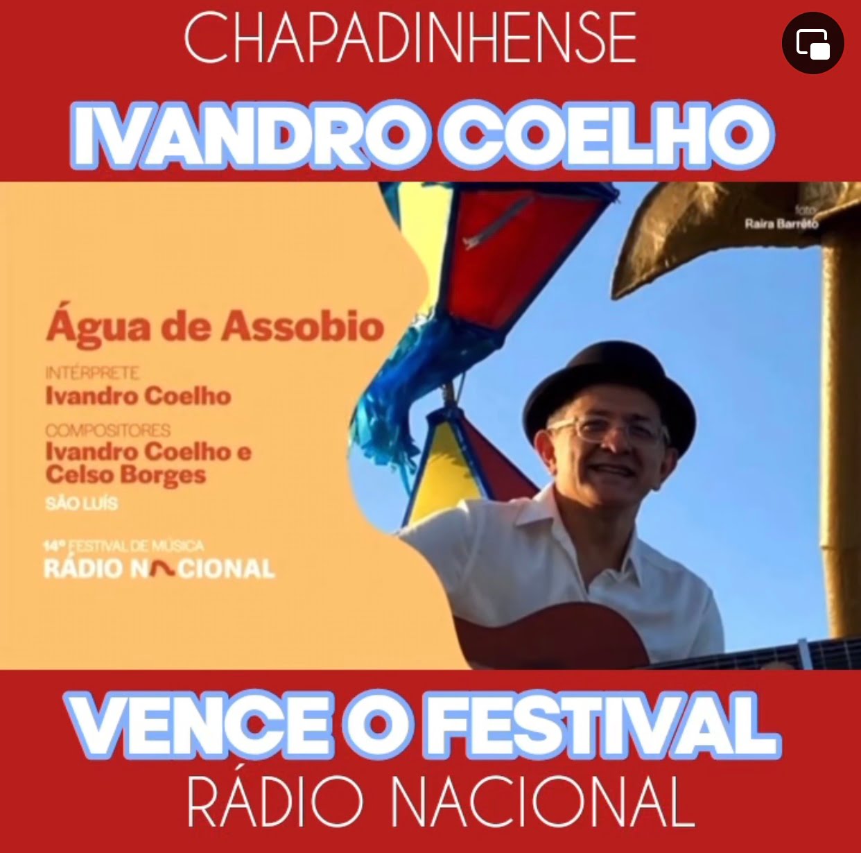 Ivandro Coelho, é Cantor, Compositor, Jornalista, Professor, Mestre e Doutor em Educação (ufa!), e, agora, campeão do 14º Festival de Música da Rádio Nacional, como Melhor Intérprete Vocal. Estou falando do chapadinhense @ivandro_sc Ivandro Coelho, que superou concorrentes de todo o Brasil, num dos festivais mais concorridos do país. O anúncio foi feito ontem, ao vivo, pelos apresentadoras da Rádio Nacional.