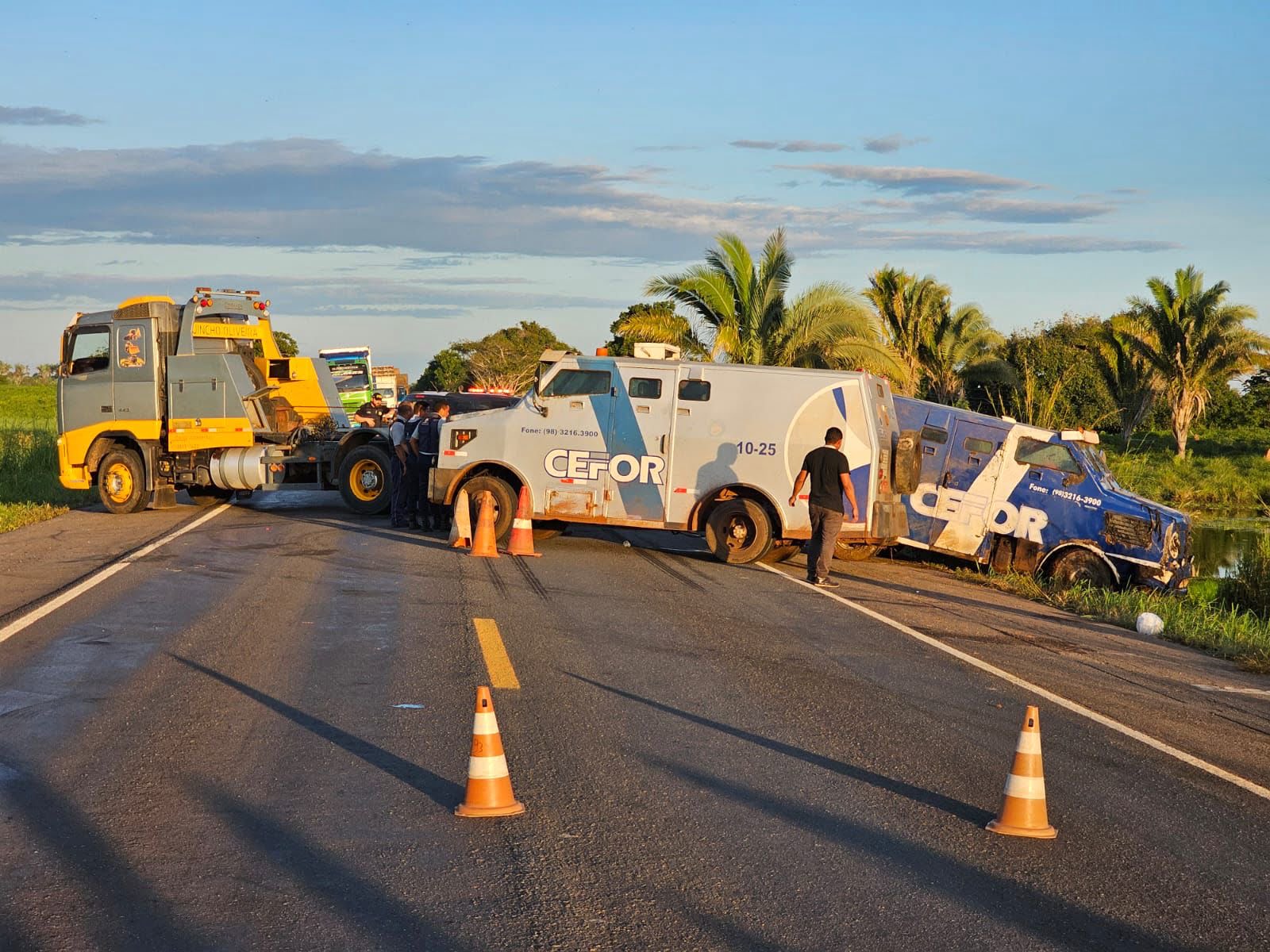 O acidente aconteceu nesta segunda-feira (03), por volta das 10h20, na BR-316, em Olho D’água das Cunhas. Um veículo de modelo M.BENZ/915 E SBB CF, utilizado para o transporte de valores e pertencente a uma empresa de segurança privada, saiu da pista (saída de leito carroçável) na altura do km 318. O condutor do veículo, de 35 anos, e um dos ocupantes, um homem de 46 anos, tiveram apenas ferimentos leves.