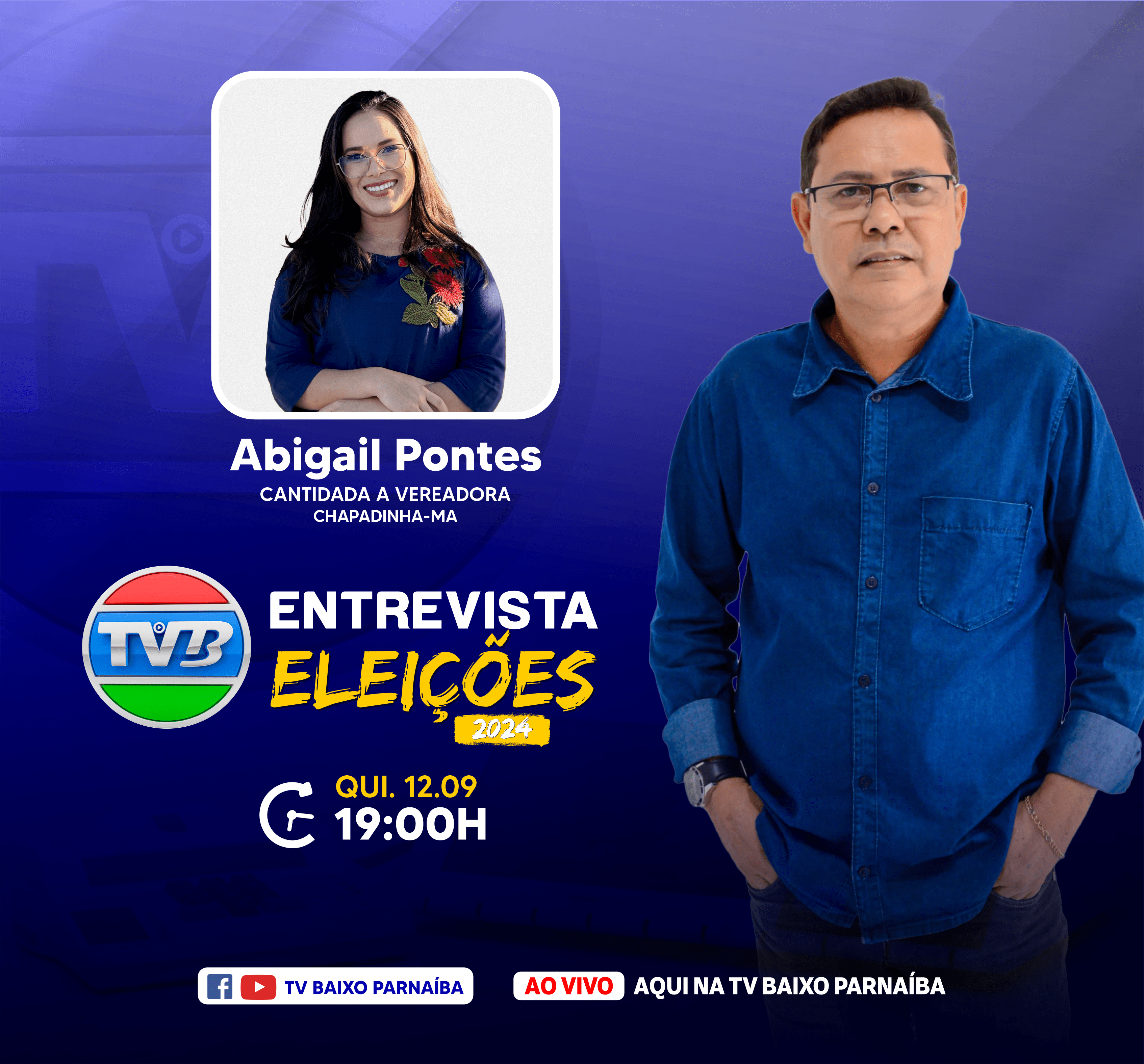 ELEIÇÕES 2024: ENTREVISTA COM A CANDIDATOA A VEREADORA ABIGAIL PONTES Política 13 de setembro de 202413 de setembro de 2024tvbaixoparnaiba.com.brLeave a Comment on ELEIÇÕES 2024: ENTREVISTA COM A CANDIDATOA A VEREADORA ABIGAIL PONTESSabatina continua e a entrevista com transmissão pelo nosso canal do YouTube, é com o candidata a Vereadora Abigail Pontes. Facebook WhatsApp