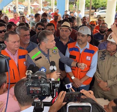 Antes de conceder entrevista coletiva, o ministro sobrevoou o trecho que compreende a ponte e também realizou uma vistoria técnica, ao lado do governador do Maranhão, Carlos Brandão (PSB) e do governador de Tocantins, Wanderlei Barbosa, além de engenheiros da pasta e do DNIT.
