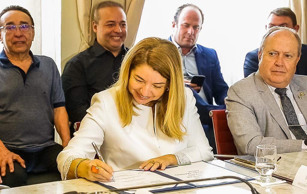 A presidente da Assembleia Legislativa do Maranhão, deputada Iracema Vale (PSB), participou, nesta segunda-feira (14), no Palácio dos Leões, da assinatura da ordem de serviço para as obras do Novo Programa de Aceleração do Crescimento (PAC) no Maranhão. A assinatura foi feita pelo ministro das Cidades, Jader Barbalho Filho, e pelo governador Carlos Brandão (PSB), garantindo investimentos para a execução de serviços de esgotamento sanitário, hidrometração e estação de tratamento de esgoto na Grande Ilha.