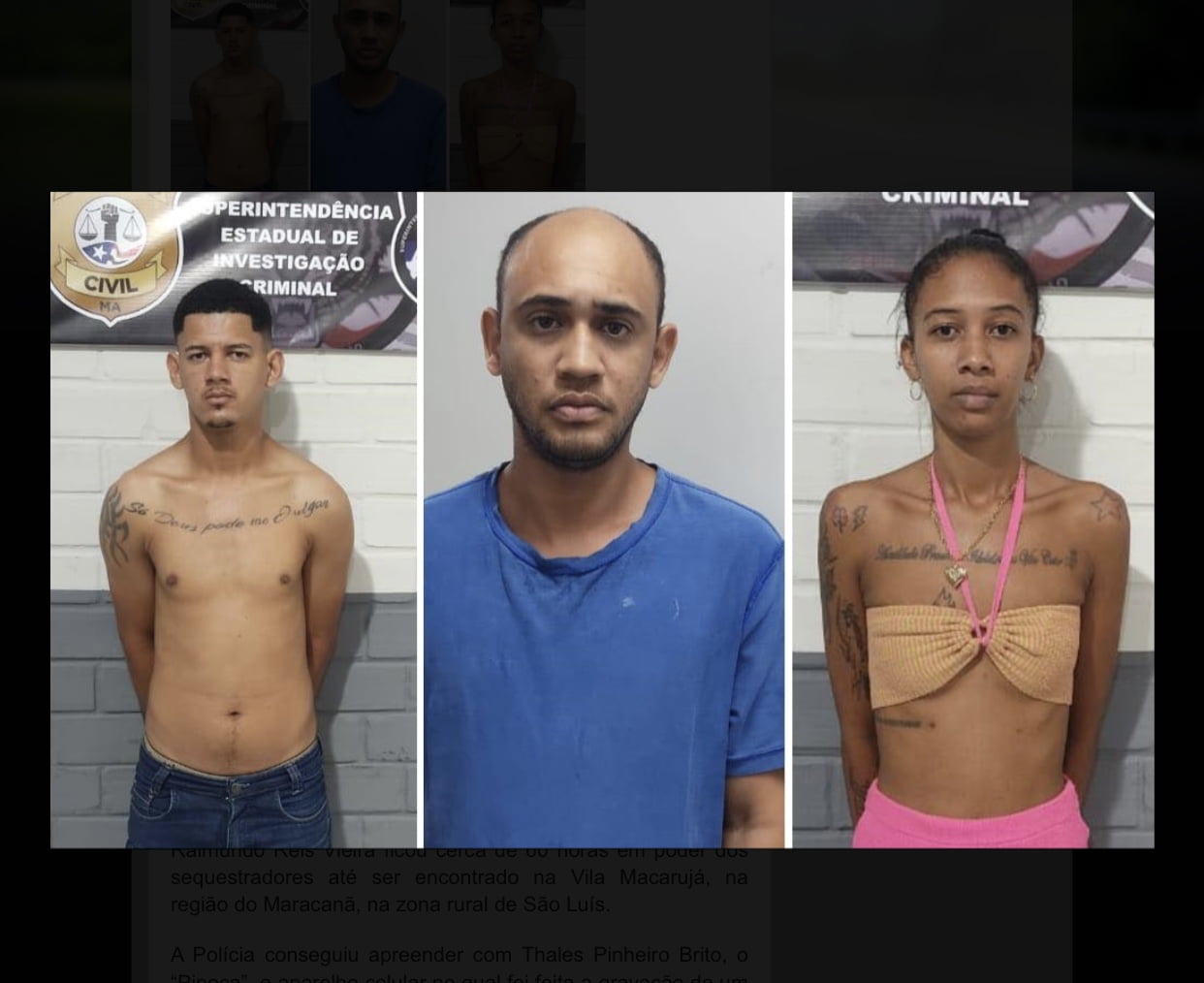 A Polícia Civil do Maranhão, por meio da Superintendência Estadual de Investigações Criminais (SEIC), conseguiu prender três criminosos, entre eles uma mulher, envolvidos no sequestro do empresário Raimundo Reis Vieira, de 85 anos, que é Promotor de Justiça aposentado.