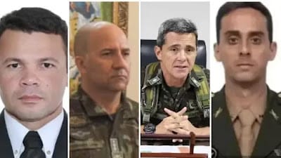 Coronel Hélio Ferreira Lima: comandava a 3ª Companhia de Forças Especiais, em Manaus, e foi destituído do cargo em fevereiro deste ano; Mário Fernandes: general e ex-ministro interino da Secretaria-Geral e secretário-executivo da PR. Atualmente, ele é reformado e assessor do deputado Eduardo Pazuello, ex-ministro da Saúde; Rafael Martins de Oliveira: major das Forças Especiais do Exército. Acusado de negociar com o coronel Mauro Cid, ex-ajudante de ordens do ex-presidente Jair Bolsonaro, o pagamento de R$ 100 mil para custear a ida de manifestantes a Brasília; Major Rodrigo Bezerra de Azevedo; Policial federal Wladimir Matos Soares.