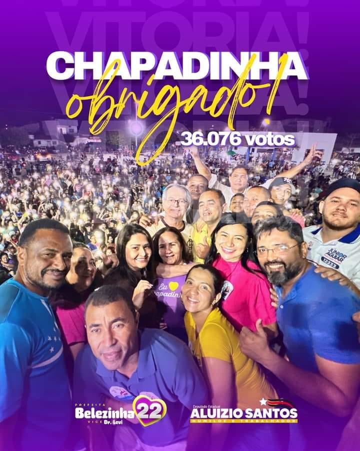 Belezinha, do PL, foi eleita neste domingo (6) prefeita de Chapadinha (MA) para os próximos quatro anos. Ao fim da apuração, Belezinha teve 36.076 votos, 78,99% dos votos válidos (dados a todos os candidatos).